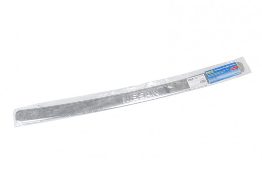 Декоративная накладка на задний бампер Nissan Qashqai — это аксессуар автомобильного тюнинга, который защищает верхнюю часть заднего бампера от механических повреждений при загрузке или выгрузке вещей из багажника. Декоративные накладки на задний бампер предназначены для автомобилей Ниссан Кашкай до 2013 г.в.