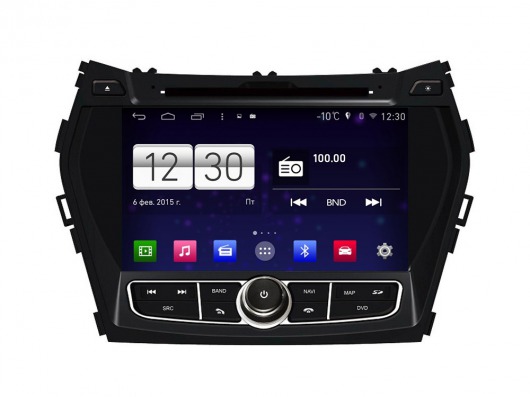 Штатное головное устройство FarCar s160 (M209) с  чувствительным сенсорным дисплеем 8 дюймов, точным GPS-навигатором и новейшей ОС Android 4.4.4 (с возможностью перехода на ОС Windows) разработано специально для автомобилей Hyundai Santa Fe от 2012 г.в. и легко устанавливается, не нарушая проводку. Магнитола для Хендай прекрасно заменяет «родную», уже поднадоевшую, аудиосистему и обеспечивает все современные функции для комфортного времяпрепровождения в авто.