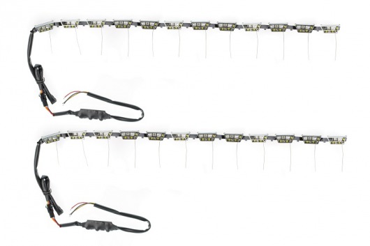 Гибкие дневные ходовые огни (DRL) Optima предназначена для установки в фары автомобиля. Может работать в 2-х режимах: для подсветки и индикации поворота, а также в режиме дневных ходовых огней (DRL).  При повороте лента светит желтым светом, при движении прямо — белым. Диодная лента имеет гибкий корпус, поэтому может быть согнута в любом направлении.