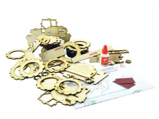 Детали конструктора Lemmo легко и в то же время интересно собираются в красивую и реалистичную игрушку-трактор. При этом в набор входит клей ПВХ и наждачная бумага, с помощью которых ваш ребенок может собрать развивающий конструктор наиболее аккуратно. После сборки деревянного трактора можно раскрасить его гуашевыми и акриловыми красками. В результате у вас дома появляется полноценный и красочный деревянный трактор, у которого к тому же есть подвижные элементы (вращаются колеса, поднимается и фиксируется ковш). А это не может не обрадовать ценителей качественных и экологически чистых игрушек.