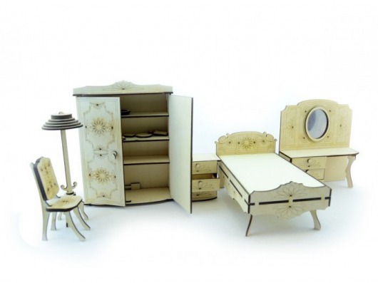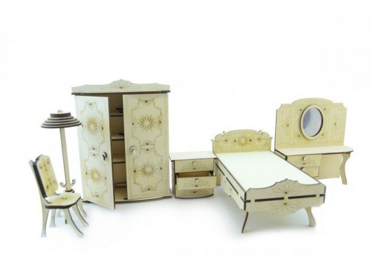 Очаровательная мебель с затейливыми цветочками на гравировке придает уют кукольному домику. Также данный набор кукольной спальни можно использовать и отдельно. В любом случае, такая спальня для кукол из дерева – мечта любой девочки!