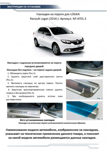 Вопросы и отзывы про Накладки на пороги для Renault Logan от 14 г.в. (Rival)