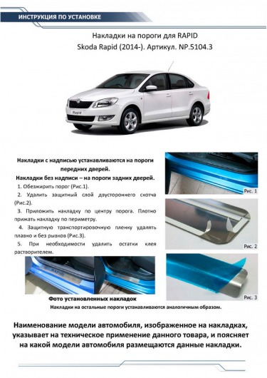 Вопросы и отзывы про Накладки на пороги для Skoda Rapid от 14 г.в. (Rival)