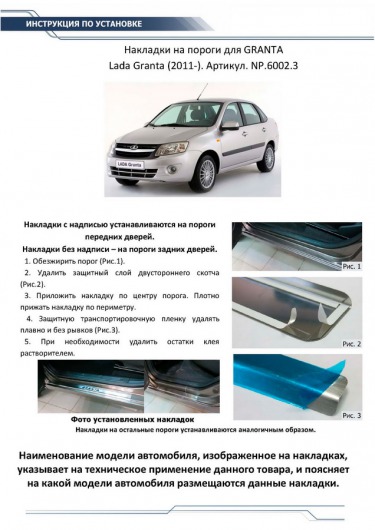 Данные накладки на внутренние пороги «Риваль» разработаны специально для автомобилей Lada Granta от 2011 г.в. и полностью повторяют их геометрию. Кроме того, накладки порогов двери Rival очень легко и быстро устанавливаются. И при этом надежно крепятся за счет плотного прилегания морозостойкого скотча.