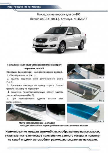 Вопросы и отзывы про Накладки на пороги для Datsun on-DO от 14 г.в. (Rival)