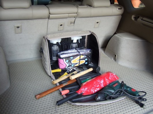 Этот автомобильный органайзер небольших размеров — 46 х  30  х  31 см, но Вы можете хранить в нем немало нужных вежей. Вы можете положить туда и набор автохимии, и буксировочный тросс, и щетку-сметку для снега со скребком и много других полезных предметов.