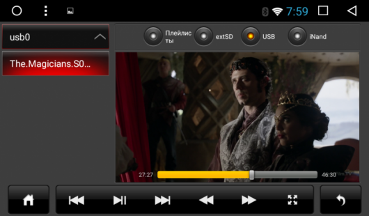 В аудиотракте мультимедийной системы используется 3-полосный эквалайзер. Встроенный усилитель мощностью 4x45 Вт построен на MOSFET транзисторах, а для любителей более мощного звука предусмотрены линейные выходы - фронт, тыл, сабвуфер.