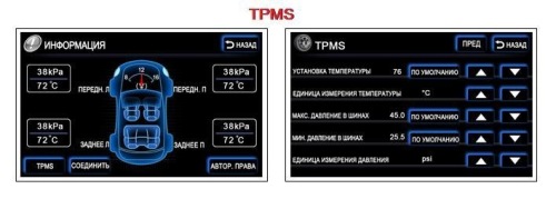 Возможность подключения датчиков для измерения давления и температуры шин (опция)