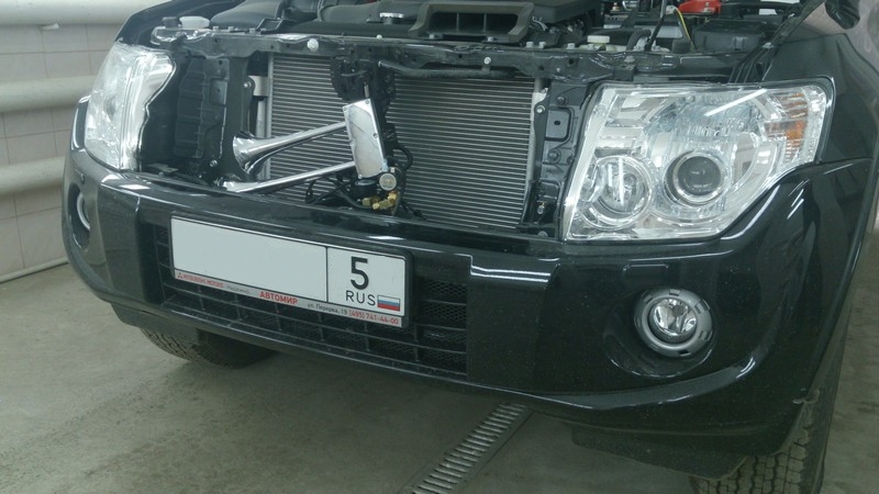 Фото установленного звукового сигнала Hadley KIT 961 на Mitsubishi Pajero 4: