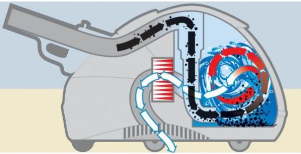 • Водяной фильтр - гарантия того, что пылесборный мешок не разорвется.