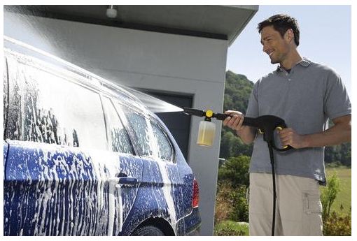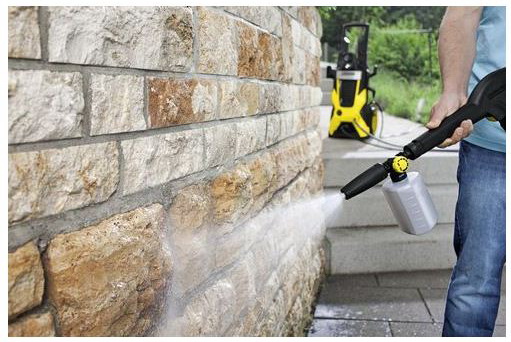 Как пользоваться. Присоединяете насадку к пистолету, в баллон заливаете чистящее средство. Чтобы не тратить лишнее средство для очистки, используйте желтую ручку: она позволяет регулировать дозирование. Параметры струи тоже регулируются. Насадка идеально сочетается со средством Karcher Ultra Foam Clean.