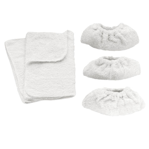 Комплект салфеток из высококачественного хлопка Kärcher - это 2 широкие салфетки для пола и 3 обтяжки для ручной насадки. Износостойкие, не оставляют после себя ворсинок, хорошо впитывают влагу. Комплект включает сразу 2 полезных вида салфеток, что очень удобно.