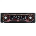 CD-ресивер Kenwood KDC-WF431A имеет съемную переднюю панель и флуоресцентный дисплей. Красная подсветка кнопок стильно смотрится и делает использование магнитолы удобным.