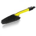 Щетка для мойки колесных дисков Kärcher позволит очистить от грязи даже труднодоступные узкие места автомобильных колесных диском, а так же спицы велосипеда. Надежное крепление, которое обеспечивается специальной гайкой и эргономичной рукояткой обеспечит не только бережную, но и высокоэффективную очистку.