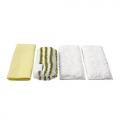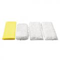 Комплект микроволоконных салфеток для ванной включает 4 салфетки различного назначения. Две из них предназначены для пола, одна для удаления стойкого налета и одна для полировки зеркал и стекол. Комплект предназначен для пароочистителя Kärcher DE 4002.